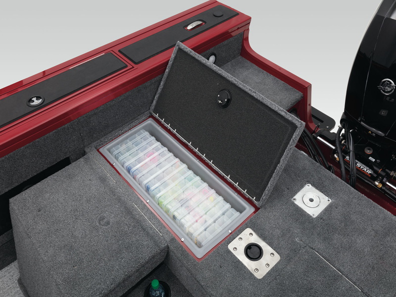 - Aft deck starboard rotomolded storage for fourteen 3700-series tackle boxes