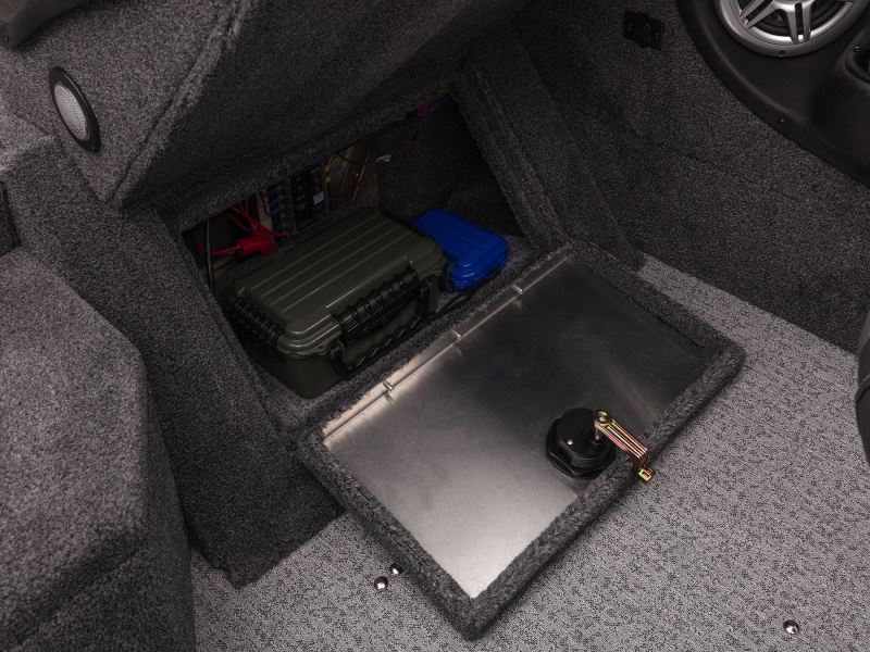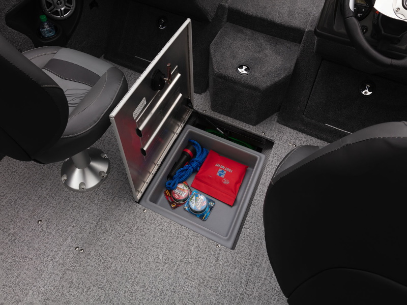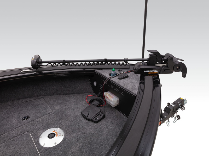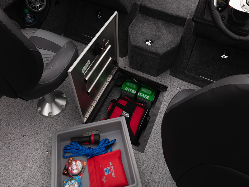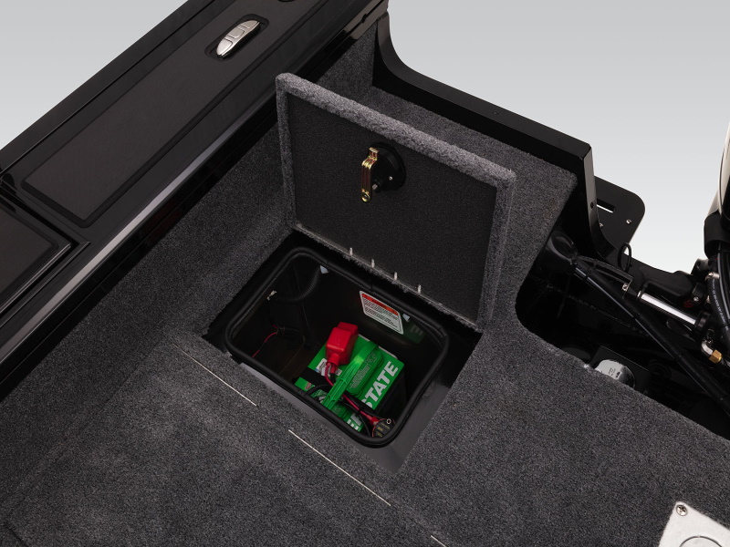 - In-floor center trolling battery storage compartment for up to 3 batteries