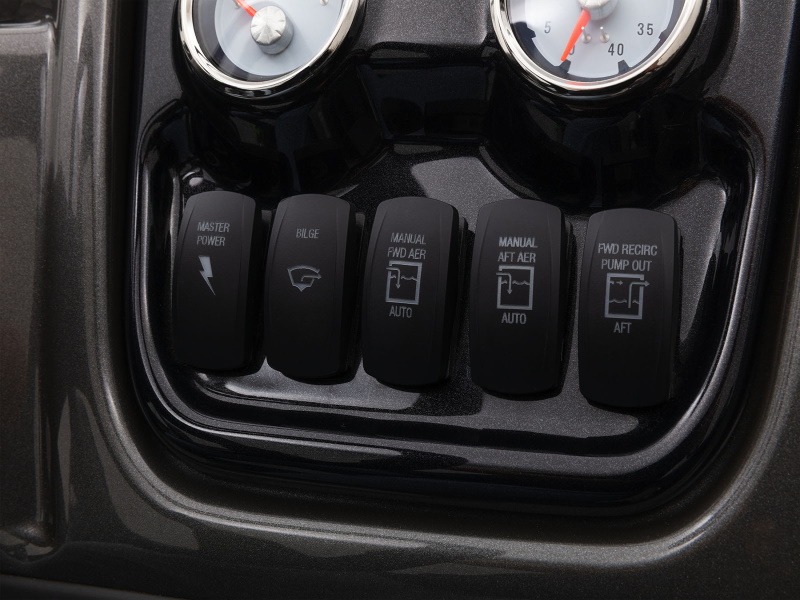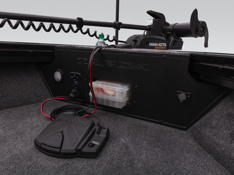 - Bow panel w/trolling motor receptacle, 12V outlet, bow aerator switch & trim switch