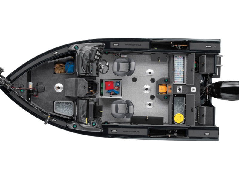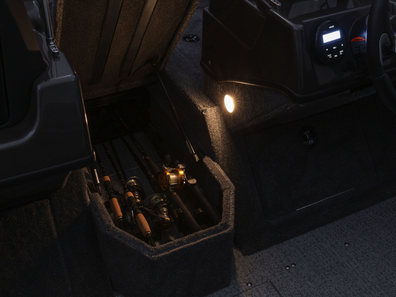 - 2 top-loading rod boxes in the gunnels for rods to 9' (2.74 m)