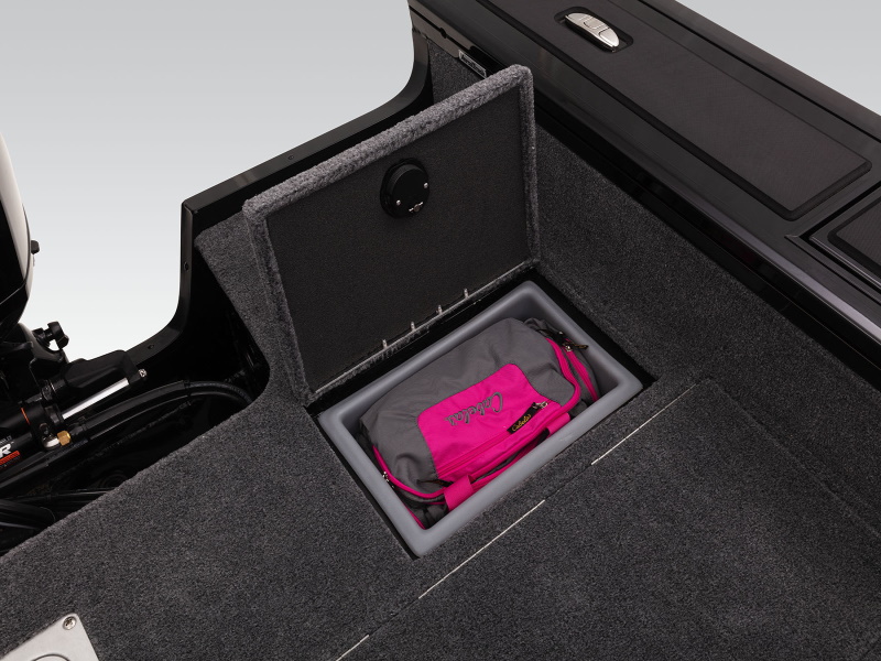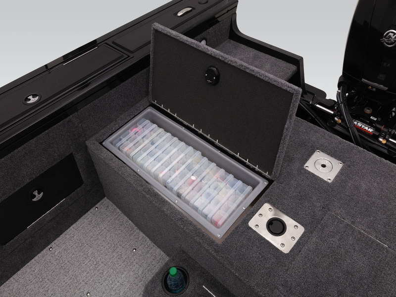- Aft deck starboard rotomolded storage for fourteen 3700-series tackle boxes