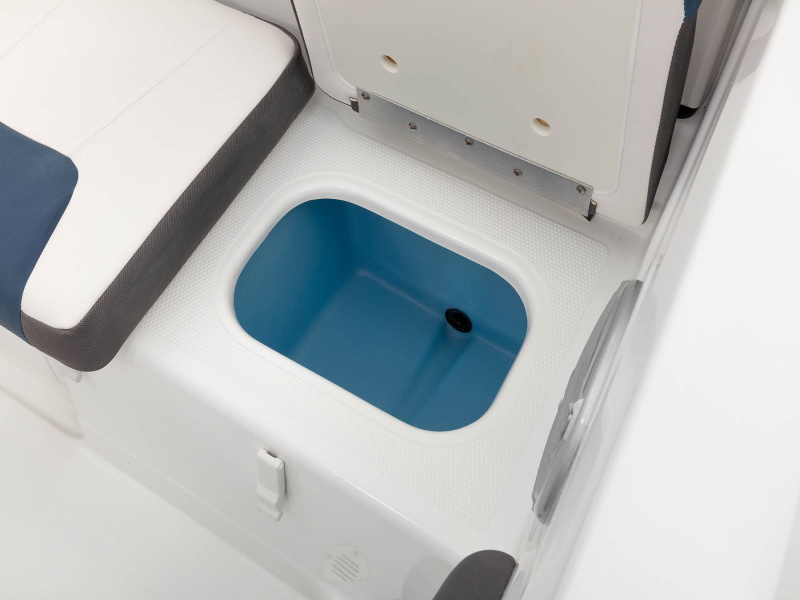 - Aft bench seat w/removable 36-qt. (34.07 L) cooler & insulated port & starboard storage compartments