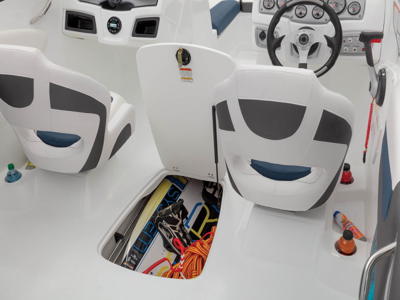 - In-floor wakeboard/ski storage compartment w/hold-open lid assist