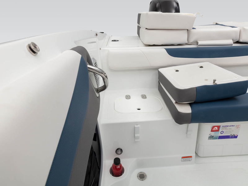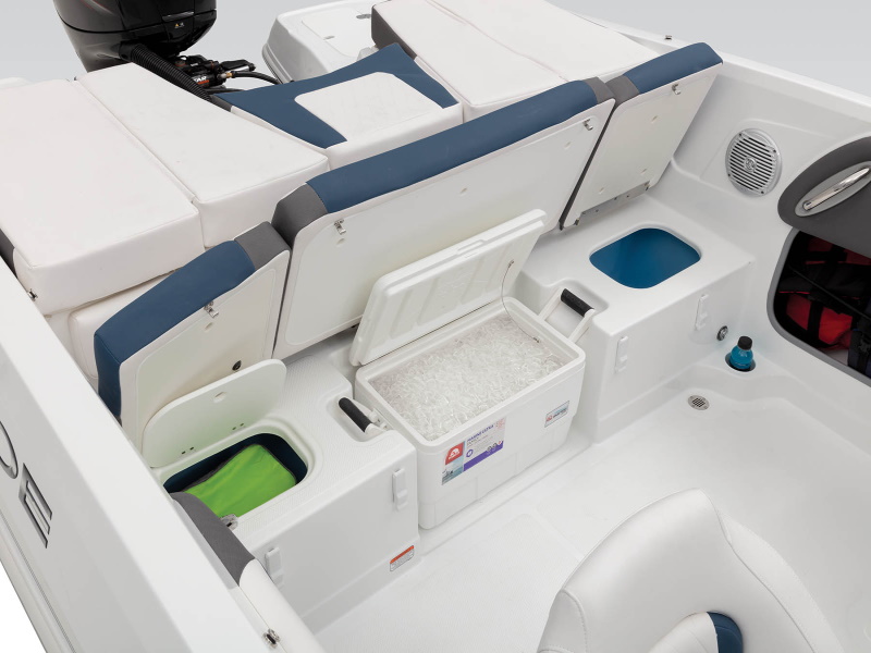 - Aft bench seat w/removable 36-qt. (34.07 L) cooler & insulated port & starboard storage compartments