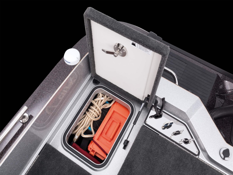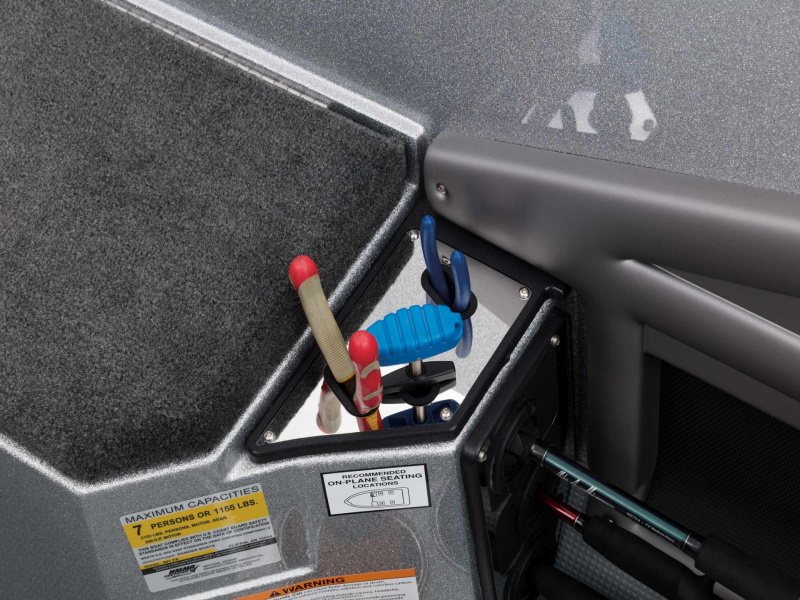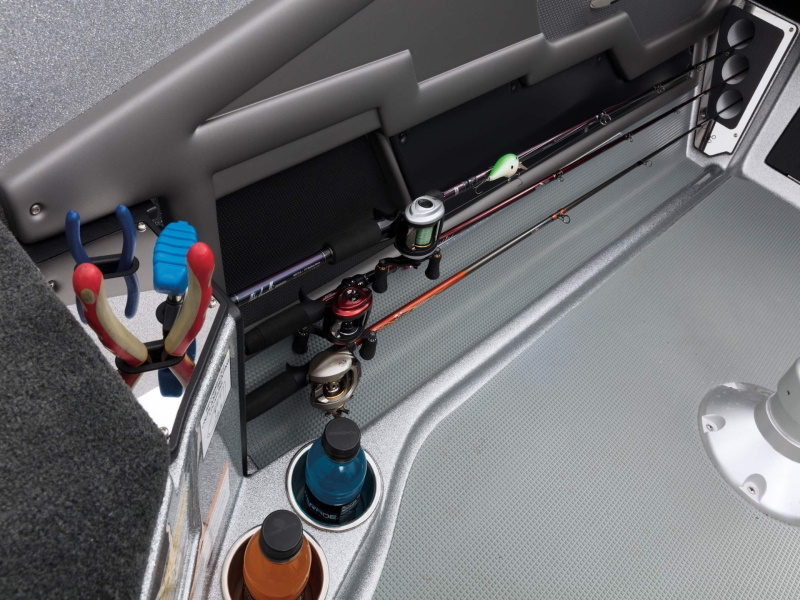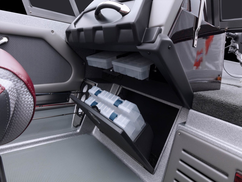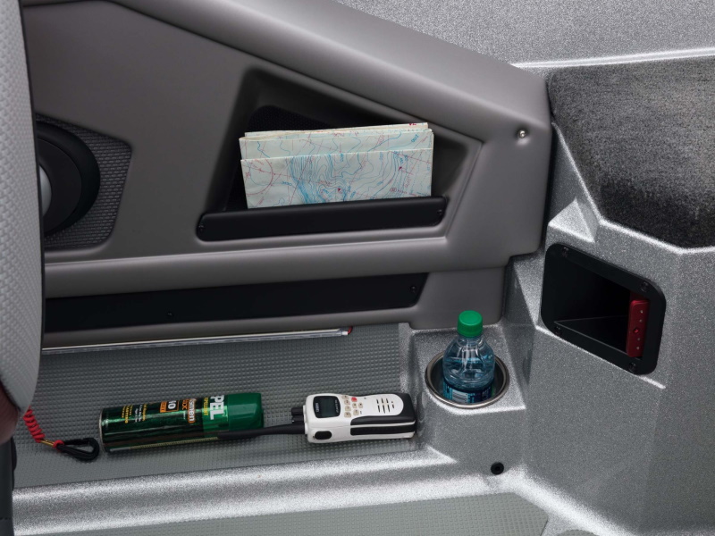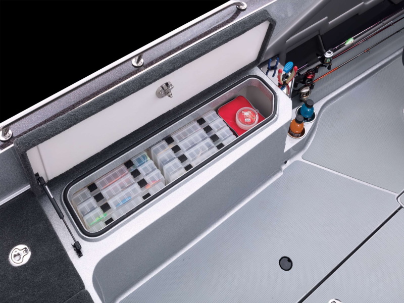 - Plano® storage under port console and passenger foot rest