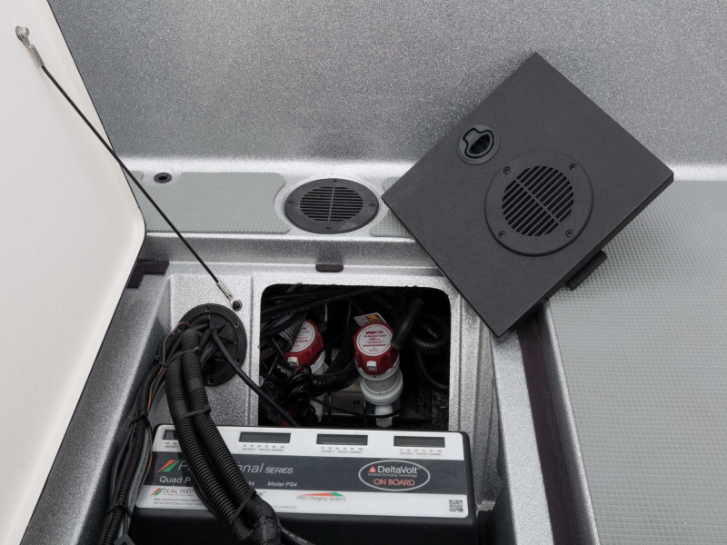 - Recirculating aerated livewell and baitwell w/ filter screens, automatic timers and livewell pump-out