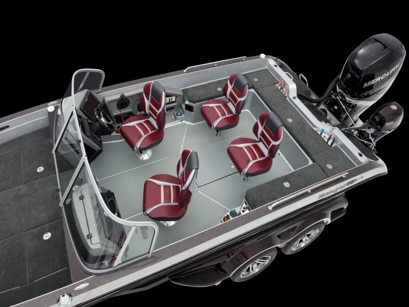 The Ranger® 621FS Ranger Cup® Equipped is a big water bruiser that delivers an experience to which all others aspire: Class-leading features and performance, a wave-flattening hull and the most demanded factory-rigged upgrades make this rig the go-to for serious big water fishermen everywhere. It’s pinpoint tracking and convenience earn it high marks from seasoned pros and guides alike. The cockpit is covered in a rugged non-skid flooring and is surrounded by four storage boxes, an extended livewell, a Runnin’ Rod Rack, in-gunnel storage and dual consoles. The driver’s side houses a Lowrance HDS-12 LIVE graph along with a full complement of gauges while the passenger console conceals drop-down tackle trays and a glove box. The rest of the Ranger Cup Equipped package consists of an HDS-9 LIVE at the bow, a Minn Kota Ulterra 112 trolling motor with three batteries, a 15x4 charger and gauge, bow rails, a trailer parking brake and Challenger wheel upgrade. The massive casting deck features an 8-foot, 6-inch rod box, insulated, gelcoat-lined cooler, baitwell and two boxes that features our exclusive Power Ventilation Rod Storage® system. Bow to stern, with the Ranger 621FS Ranger Cup Equipped, Big Water Has Met Its Match.