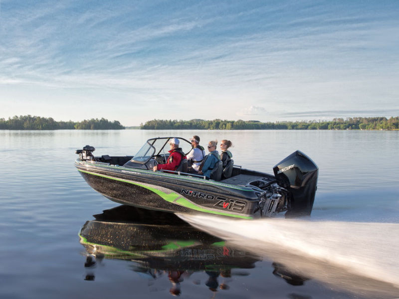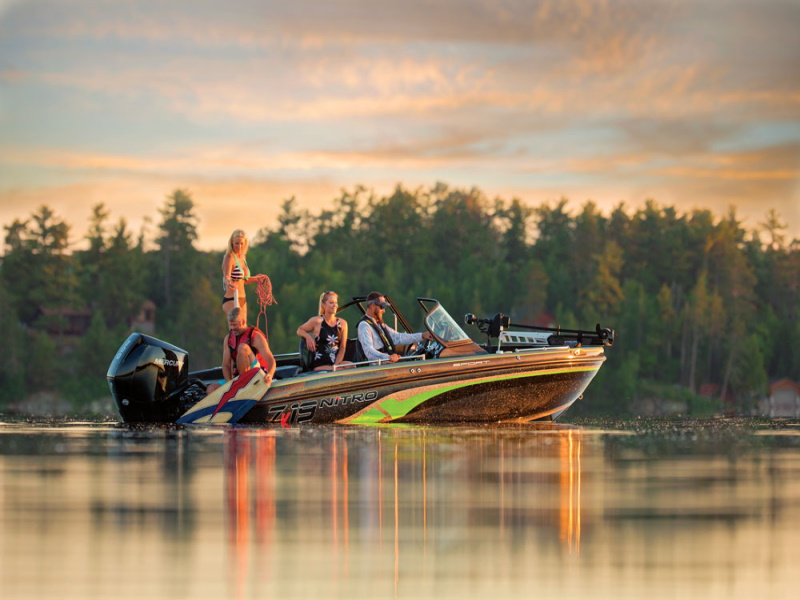 The NITRO® ZV19 Sport is an overbuilt big-water fish-and-ski boat with a 225HP rating. Two folding jump seats integrated into aft fishing deck and a removable ski tow pylon provide fun for all. And the deep, comfortable interior keeps crew of all ages safe and secure, even in rough waters.