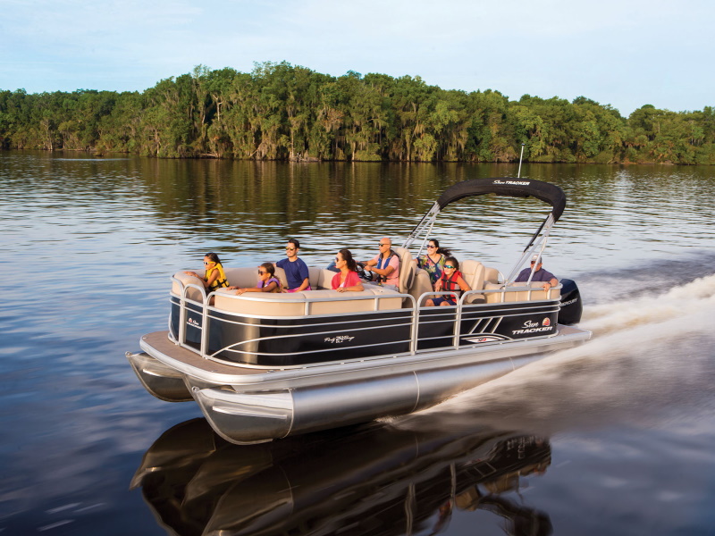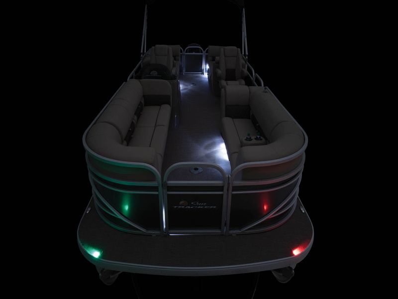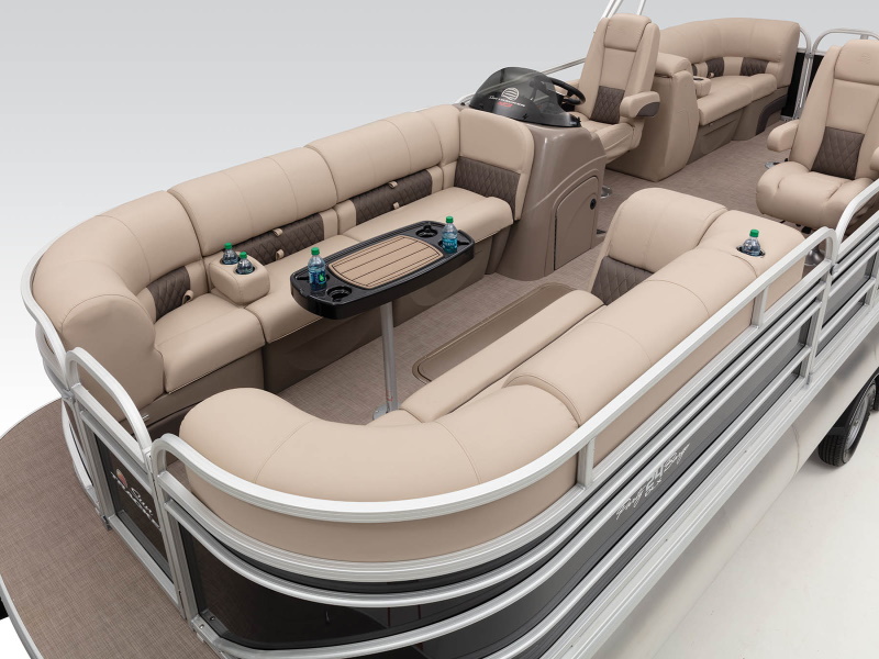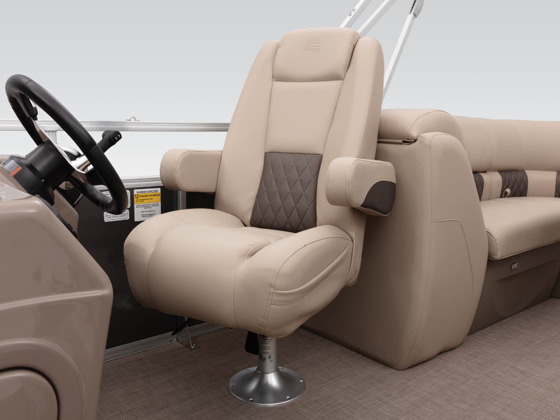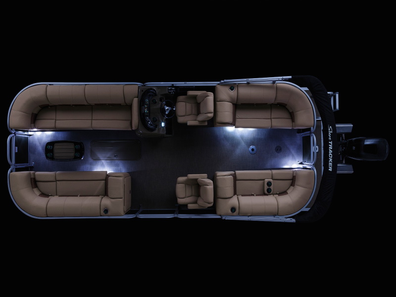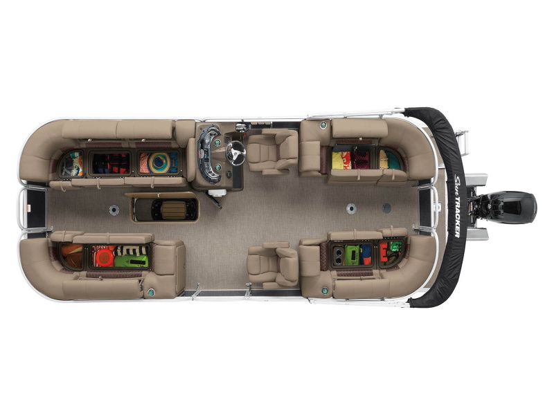 Of course, that includes four spacious and comfortable lounges, dual bucket seats for the captain and first mate and storage galore throughout (even in the floor!). It also means you get a QUICKLIFT® Bimini top and Bazooka® sound system.
