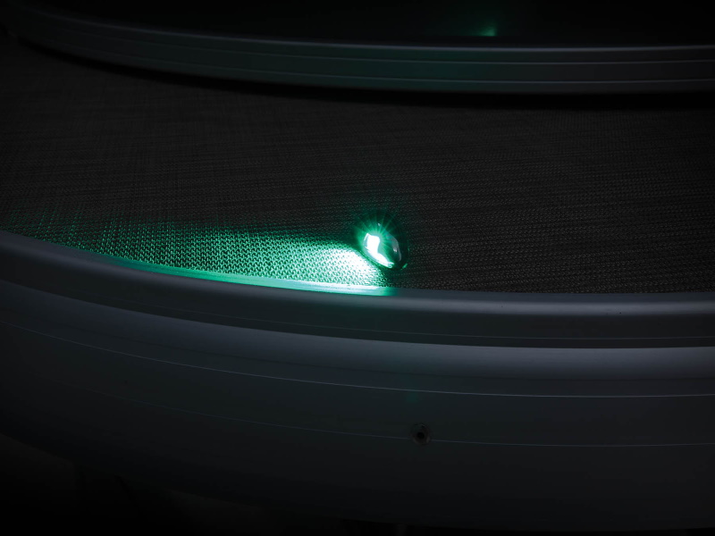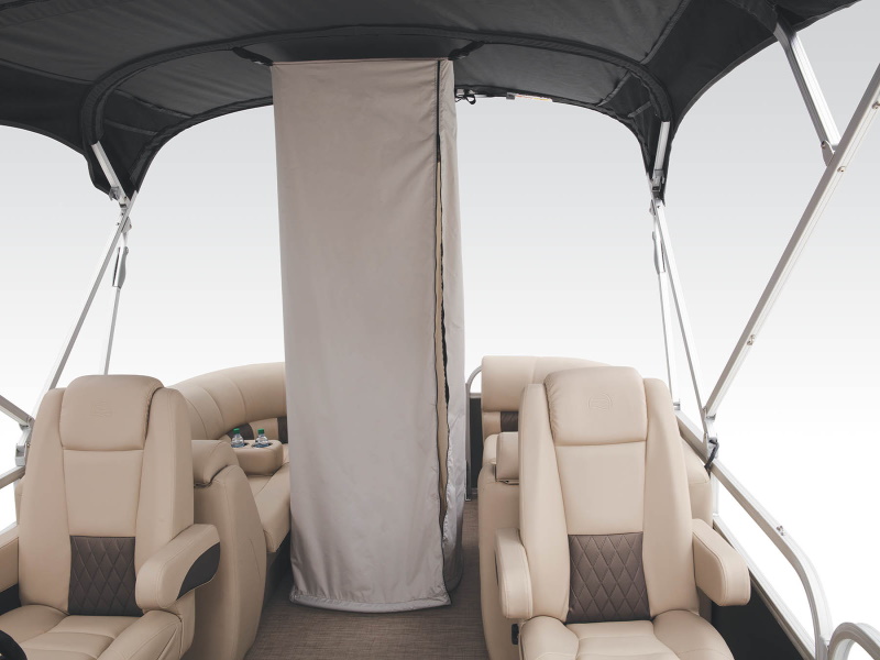 - 11' (3.35 m) color-keyed Bimini top w/LED courtesy lights, protective boot & accepts optional drop-down changing curtain