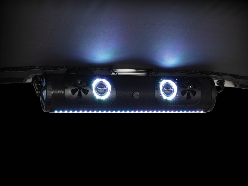 - Bazooka® Party Bar stereo & speakers in the Bimini top