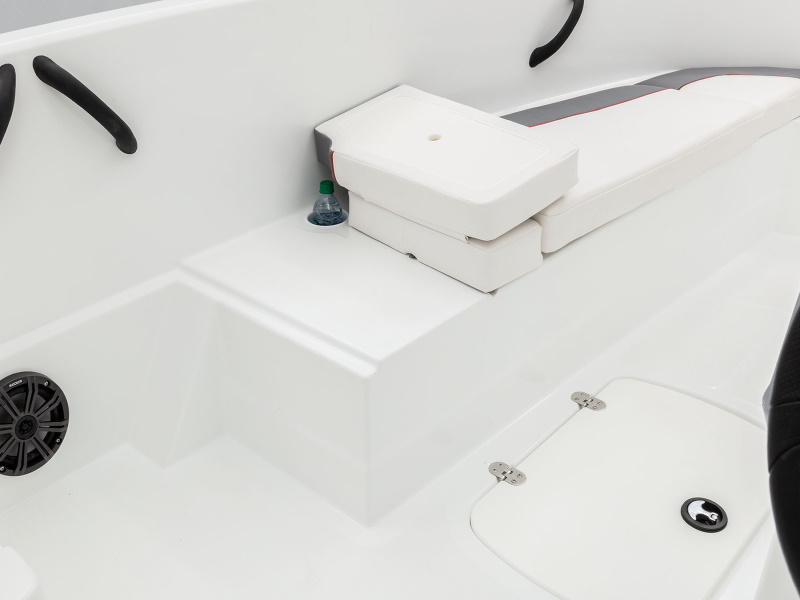 - Bow seating w/molded-in storage & reversible backrest for use as spotter seat