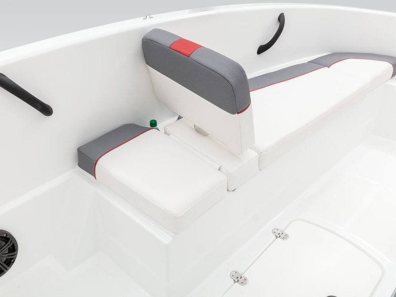 - Hinged mid-cushion for aft sunpad & fold-down seatback allows easy entry w/out stepping on upholstery