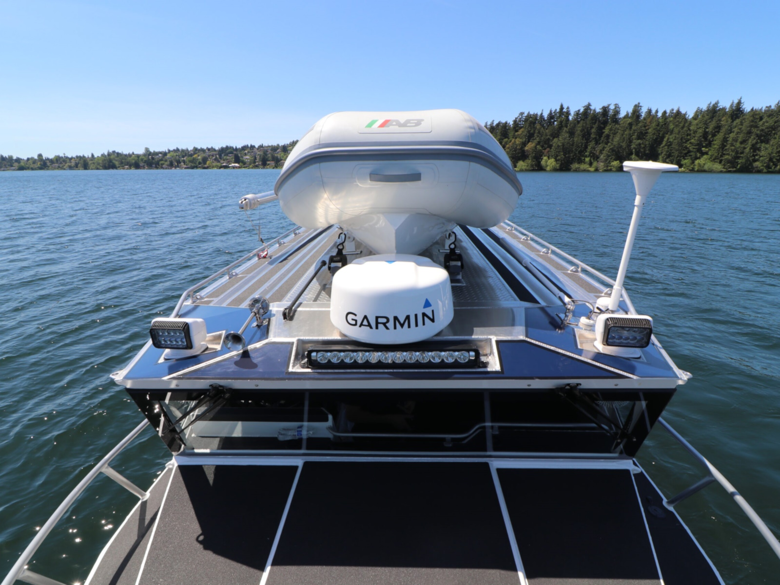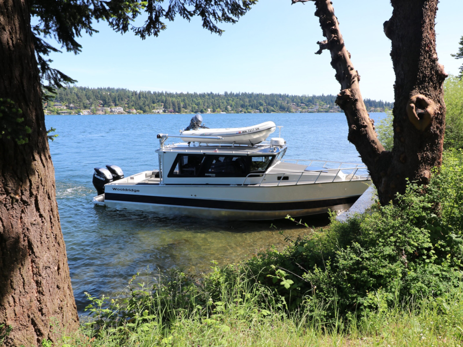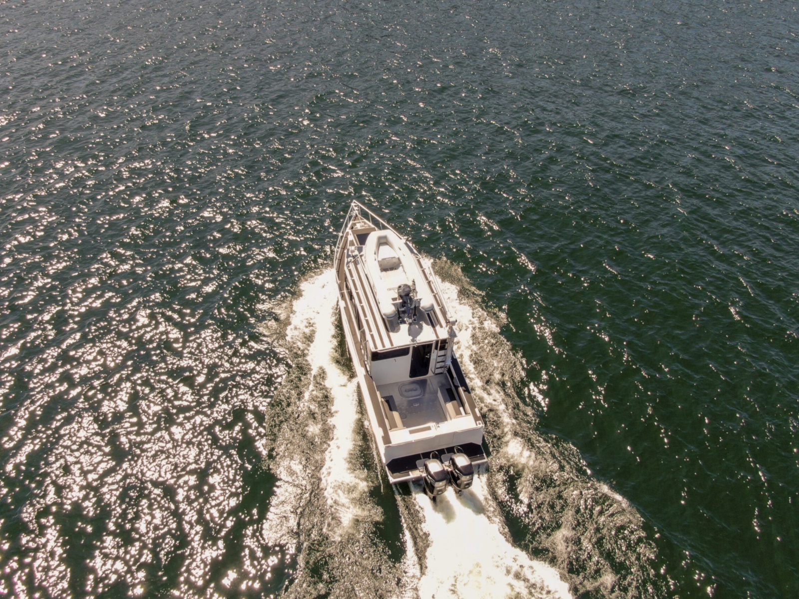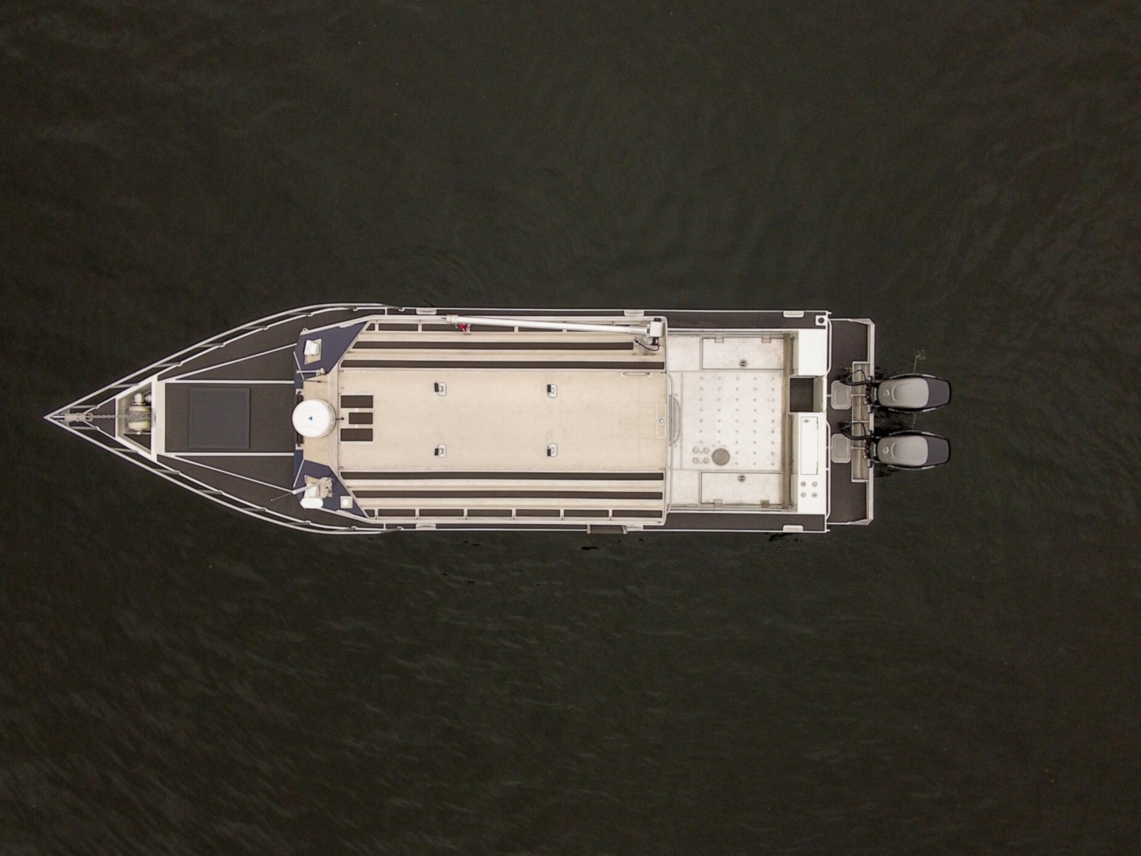 The DeepWater series! Available in three variations, DeepWater Charter, Angler, and Explorer. This boat is the Explorer variant in the series. As you can see we went all out, creating not only an extremely hard working but also beautiful boat for our customers! Two of the new features of this Explorer model we’re excited about, is an spacious belowdecks berth, located at the aft of the cabin, giving even more sleeping and storage space than we’ve previously offered. And second a stand-up head located in the large V-berth, with sink, vanity, and outside facing window. Overhead skylight for plenty of natural light in the main v-berth, it’s hard to get more comfortable. Seating galore with 3 suspension seats for the pilot and copilots, plus dinette seating. Roof mounted davit crane for loading the customers Ridged Inflatable boat, large rear fishing deck, anchor system, and powered by a pair of Suzuki Outboards, this is the ultimate fisher cruiser! But don’t take our word for it, come by our factory and see for yourself!