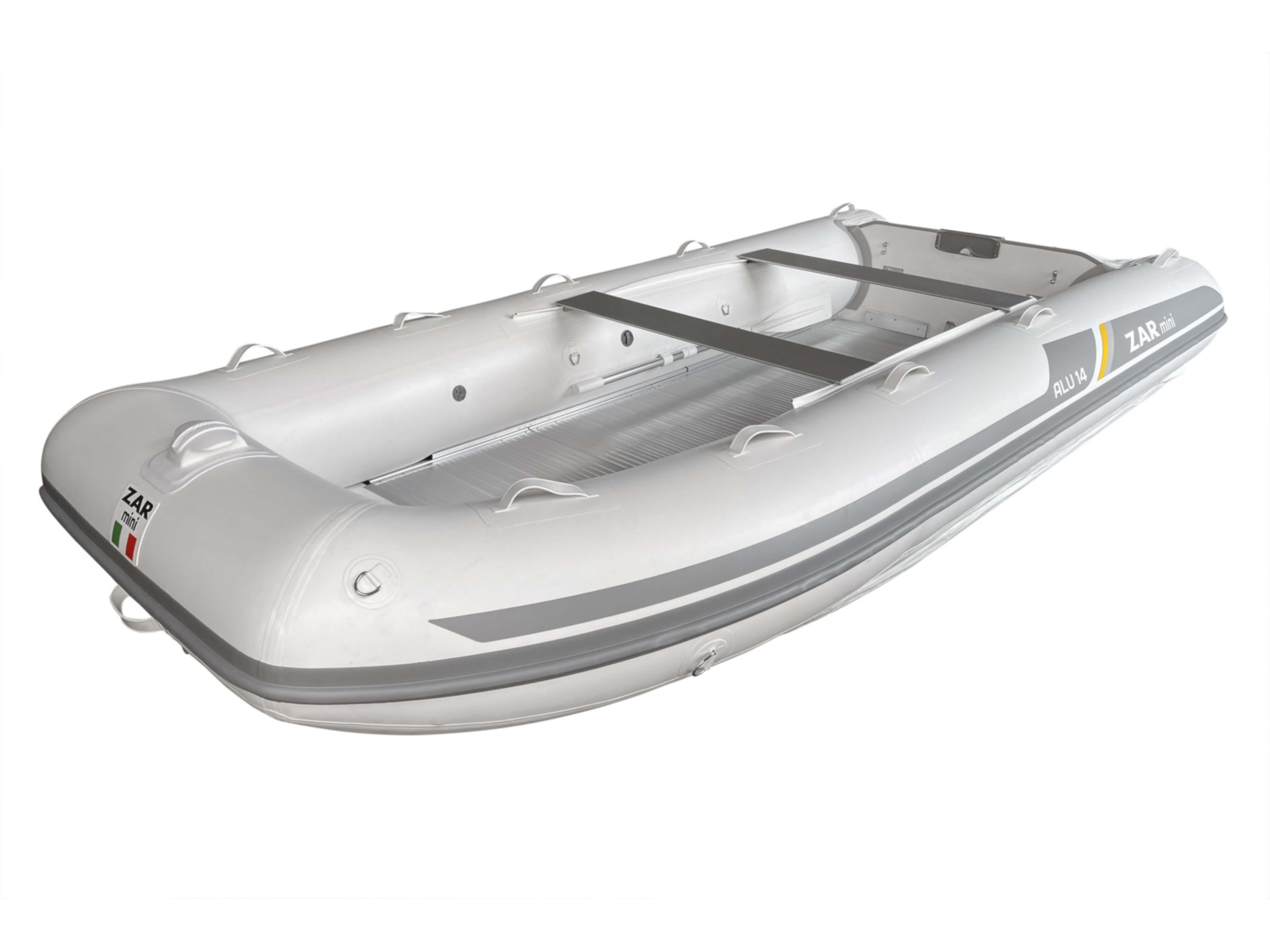 The ZAR miniTM ALU line can easily pull water toys and tubes with the two installed D-rings on the transom.