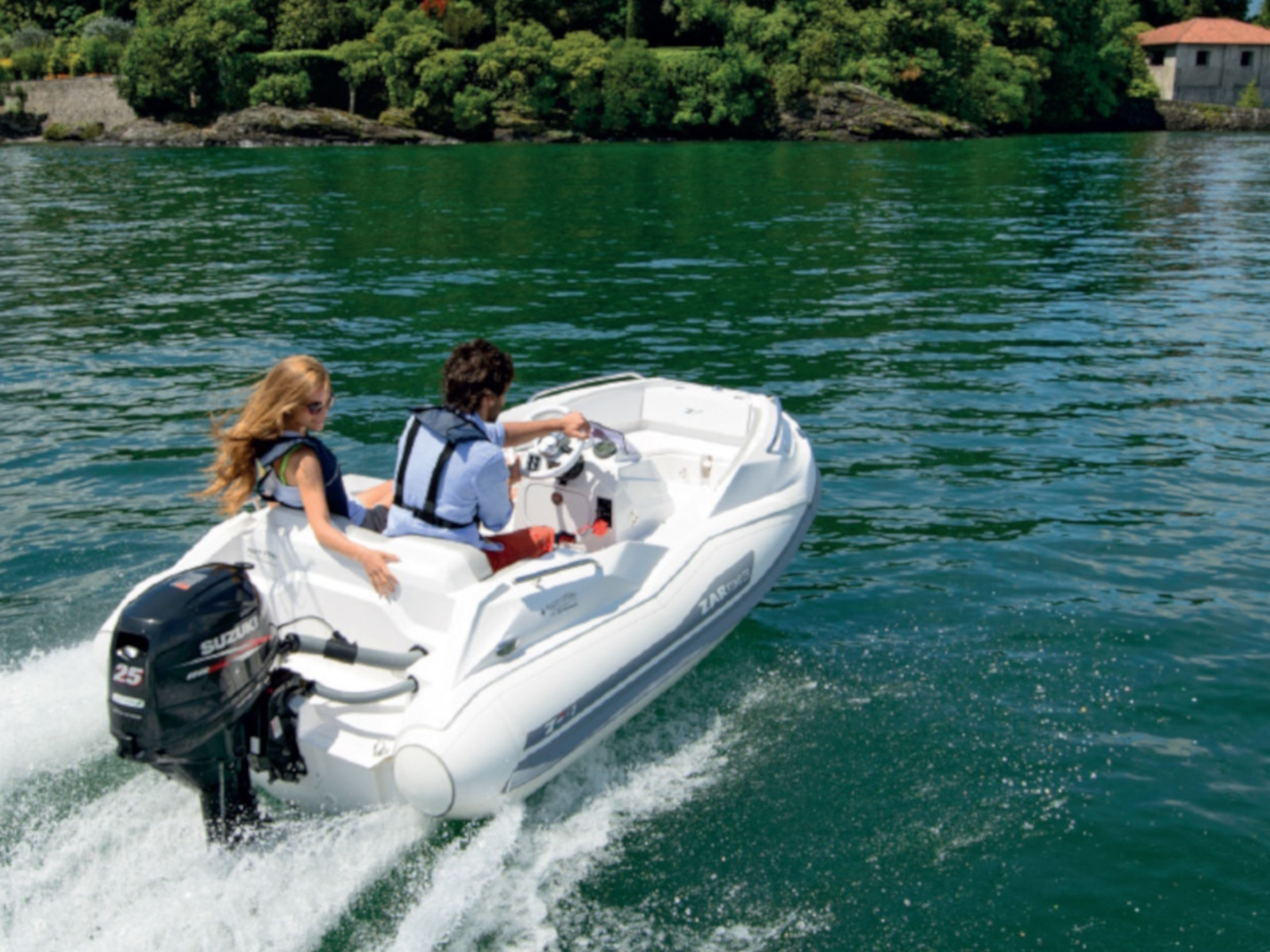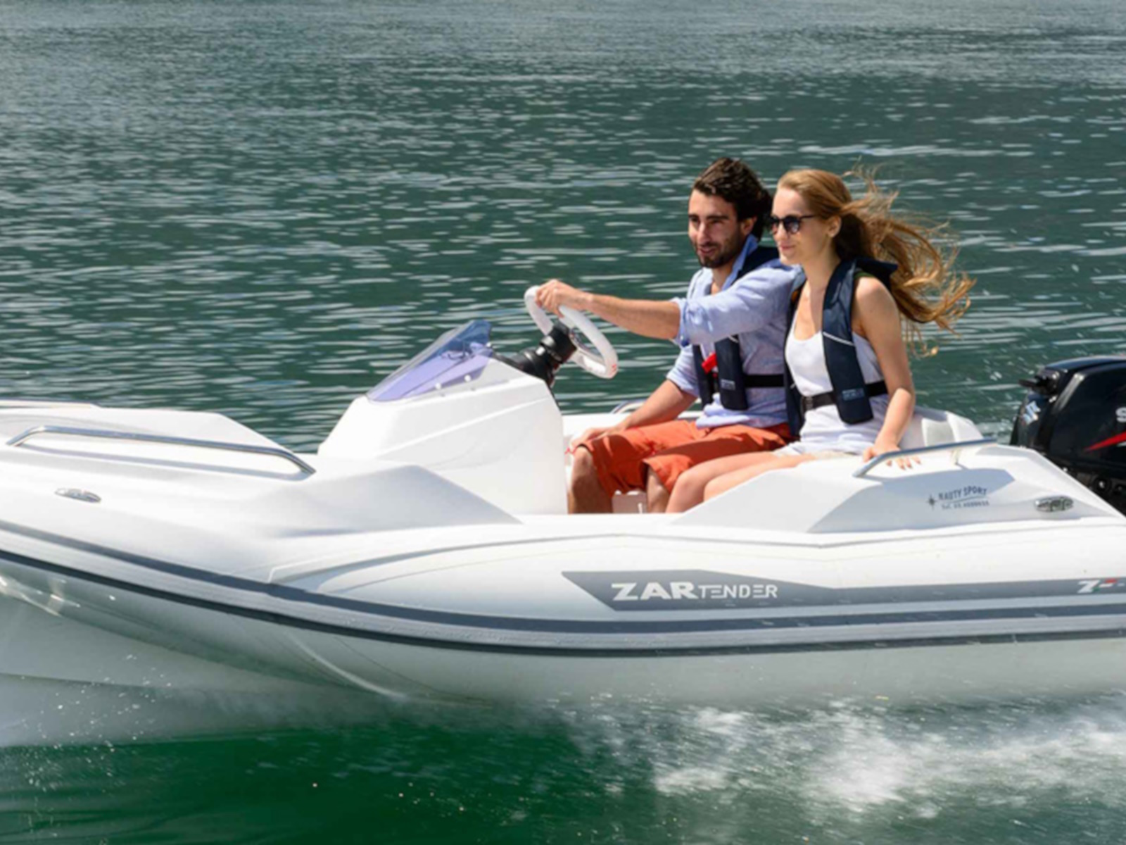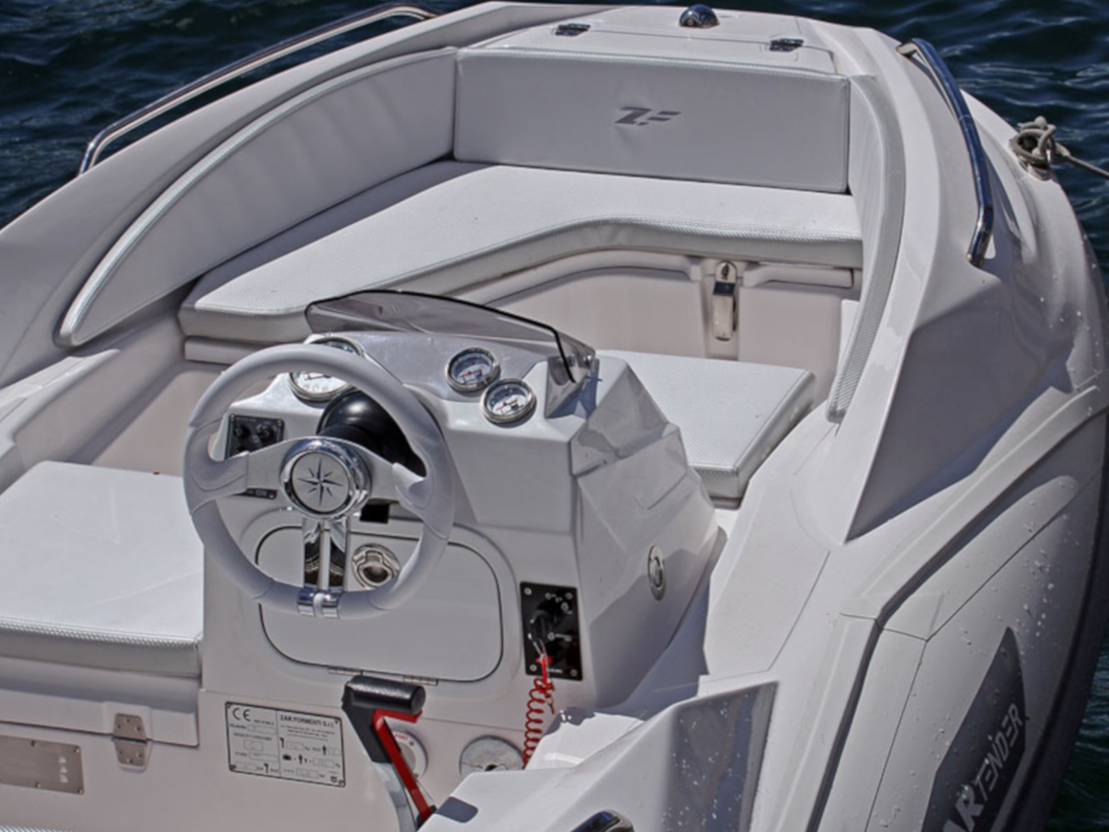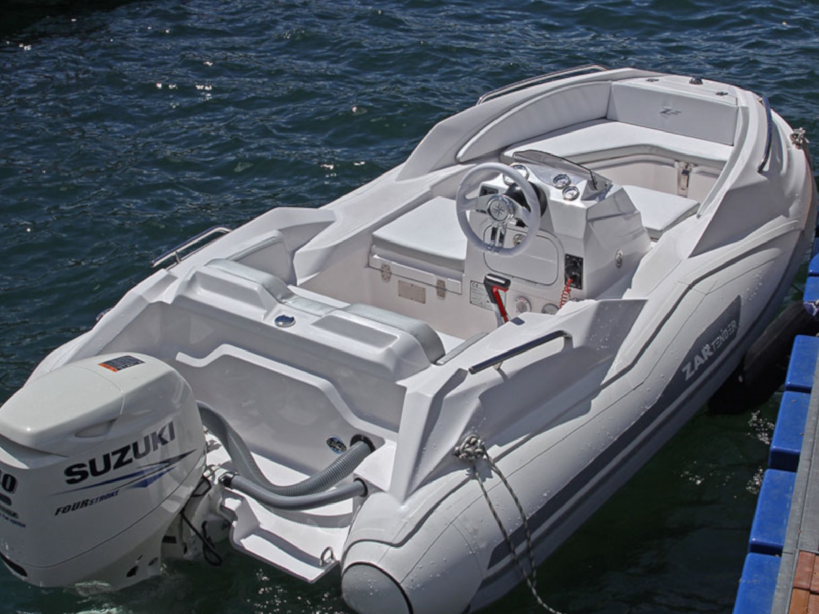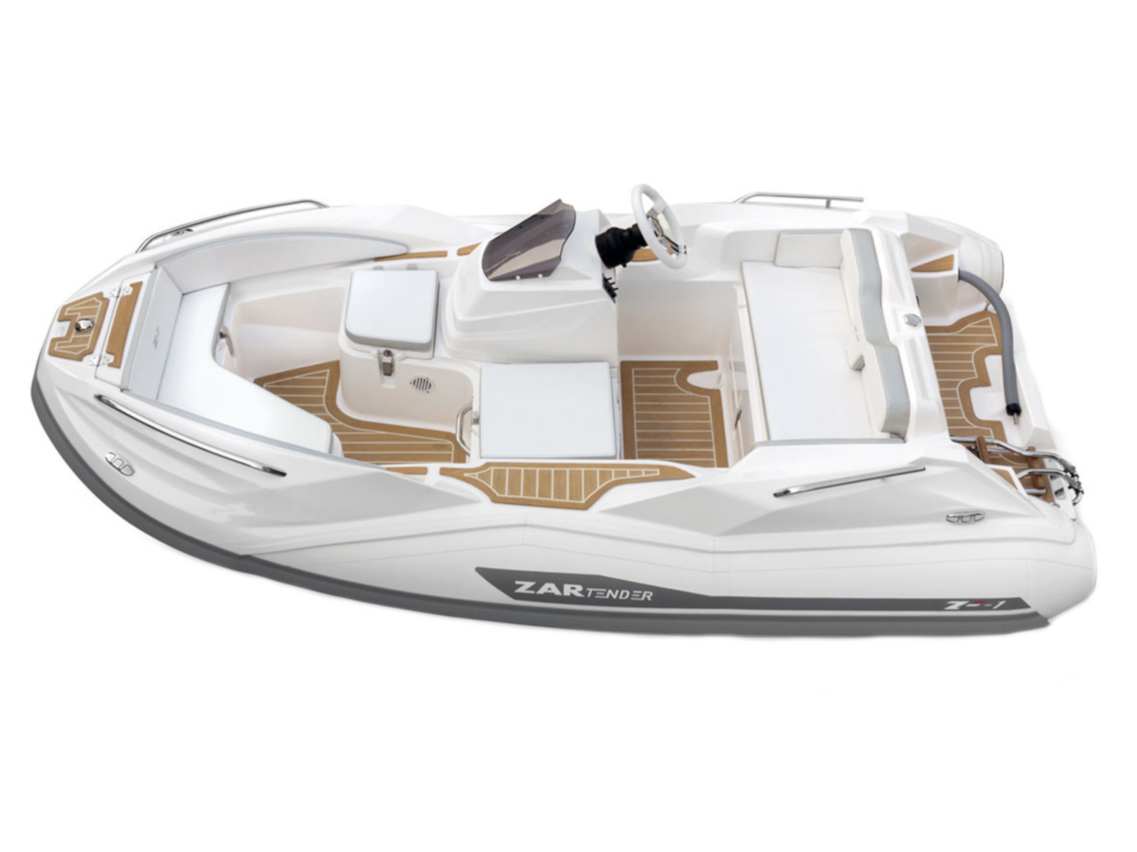ZAR 's new Tender line represents a big leap forward in terms of design, performance and functionality. The recognized "leadership" combined with ZAR's expertise in the high-end inflatable boat industry contribute to creating a product conceived in a demanding manner. All the iconic elements of the ZAR brand such as the deep "V" hull for great performance and navigation comfort, the rigid bow for greater habitability, the unsurpassed storage capacity, the quality of the materials used and the innovative and captivating design are been respected without compromise. A key aspect of corporate philosophy dictates that a ZAR is immediately recognized as such. The most important values of the brand have not only remained unchanged but have been strengthened: style, functionality, no compromise, Italian identity. This is how the Zar tender line was born, created for a fun, comfortable, practical and safe experience. With sporty lines, fast and light (only 210kg) the new TENDER ZF-1 offers a high level of performance and manageability, furthermore the rich equipment is just the surplus of a model that is already a success.